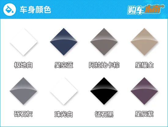 在车身颜色方面,新车提供了8种颜色可选,其中包括了极地白、昊空蓝、阿拉比卡棕、星耀金、砾石灰、珠光白、锰石黑以及星辰紫。根据小编喜好,珠光白以及星辰紫配色较为大气,看上去彰显高贵气息。