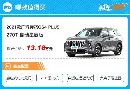 2021款广汽传祺GS4 PLUS共推出5款车型,售价区间为12.68-14.98万元。新车提供了1.5T和2.0T两套动力总成,与之匹配的传动系统均为来自爱信的6AT变速箱。接下来我们就将针对车型间的配置差异,为您来推荐哪款车型的性价比最高。
