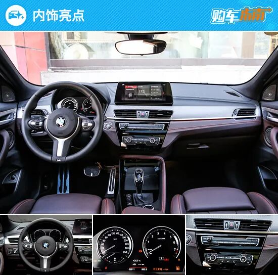 内饰方面并无太多惊喜,依然还是宝马经典的家族式设计语言。虽然略微有些新鲜感不足,但无论做工用料还是功能配置,宝马X2的表现都没有令人失望。三辐运动方向盘握持手感极佳,配合简洁的机械仪表,能够给予驾驶员最纯粹的操控感受。10.25英寸悬浮式中控屏支持CarPlay/CarLife以及语音识别控制功能,多媒体及空调区域都保留了大量的物理按键,日常操作十分便利。