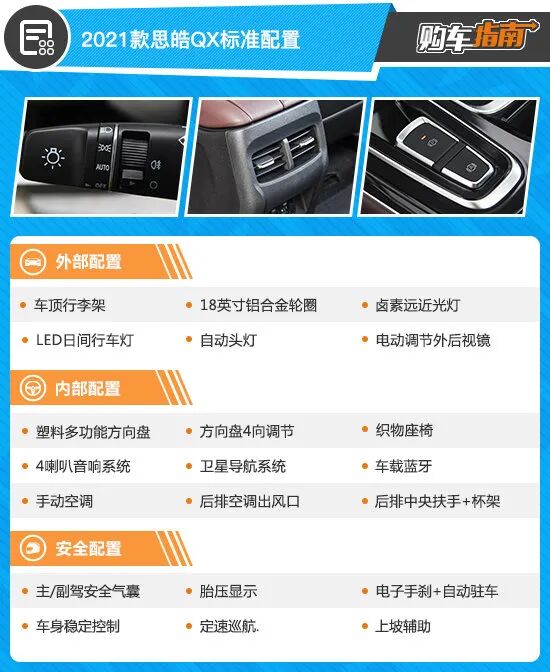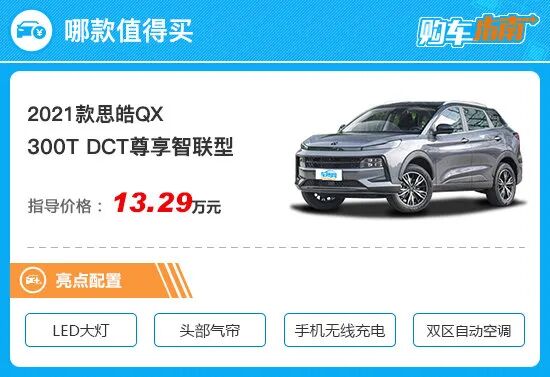 首先,对于思皓QX来说,双联屏车机系统是最能体现新车科技感的配置,同时LED大灯、头部气帘、双区空调、自动雨刷和无线充电等功能对于年轻人来说都是十分实用的配置,拥有这些功能的推荐车型相比低一配置车型的差价仅为6000元,也是不同配置车型间差价最小的。