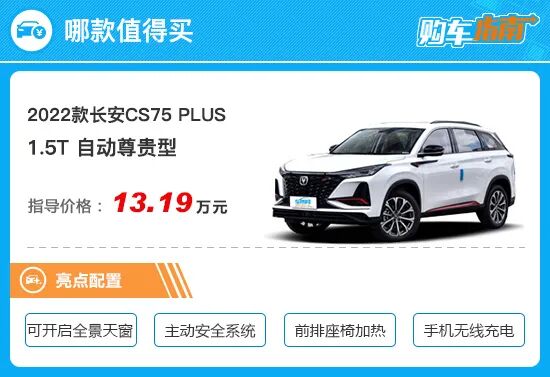 通过对比配置单不难发现,此次推荐的1.5T自动尊贵型属于2022款长安CS75 PLUS的1.5T顶配车型,相比1.5T自动豪华型,增加了如蓝牙钥匙、前排座椅加热、副驾驶电动调节、手机无线充电等实用性功能,且这些配置即便是更高一级的2.0T自动领航型也并没有配备。另外,推荐车型在安全配置方面表现也更加全面,新增了倒车车侧预警、并线辅助等驾驶辅助功能。诸多配置上的提升,相对应的这是需要多花费7000元就可获得,可谓物超所值。