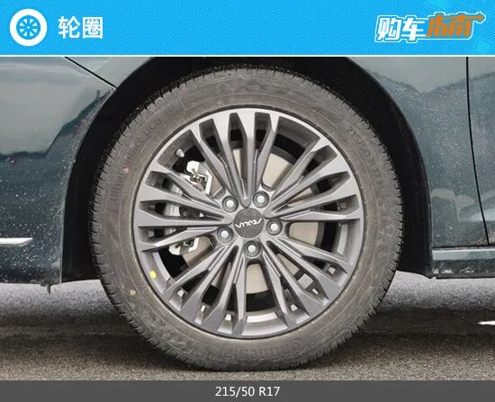奕炫MAX全系提供了单一尺寸及造型的轮圈,采用五辐分叉设计风格,搭配枪灰色涂装,视觉效果较为运动。轮胎规格统一为215/50 R17,中低配车型选用的是万力H220系列轮胎,主打舒适静音,高配车型使用的是马牌UltraContact UC6系列轮胎,具备3D主动降噪技术,可以减少噪音,提升驾乘体验。