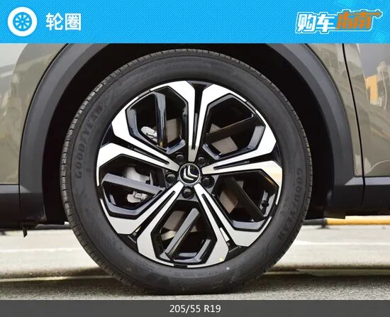 凡尔赛C5 X搭配了花瓣式19英寸轮圈,设计感十足。而轮胎则为固特异的御乘II代轮胎,该轮胎定位为豪华型轿车胎,主打静音、舒适,尺寸为205/55 R19。