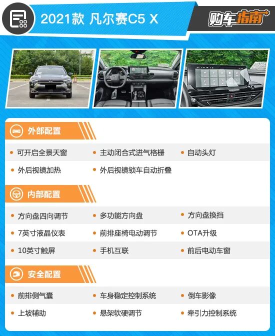 面对国内车市残酷的竞争,曾经风光无限的法系车在国内可谓是举步维艰,不过东风雪铁龙一直在苦苦坚持,希望能够重塑往日辉煌。日前该品牌推出重磅全新车型——凡尔赛C5 X。凡尔赛C5 X相对于很多法系车而言可谓良心之作,至少比DS旗下车型更为实际,没有束缚于那种高高在上理念。那么新车之中哪一款更具性价比呢?今天,我们就从“购车指南”角度帮您选出最适合选购的凡尔赛C5 X。