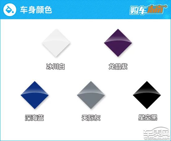 车身颜色方面,新车将提供5种涂装,分别为冰川白、龙晶紫、深海蓝、天际灰以及星空黑。其中鲜艳的龙晶紫和深海蓝适合年轻消费者,而冰川白、天际灰和星空黑较为传统,更适合注重稳重的中年人。