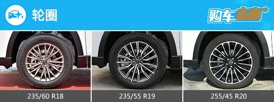 2021款捷途X90 PLUS提供了三种尺寸的多辐式轮圈,其中,手动挡和自动挡的入门车型均为18英寸铝合金轮圈,轮胎尺寸为235/60 R18;顶配的庄园版为镀铬和黑色钢琴漆组合而成的双色涂装,匹配的轮胎尺寸为255/45 R20;其余车型则为枪灰色的19英寸轮圈,轮胎尺寸为235/55 R19。