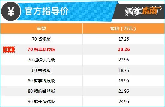 PLUS共推出7款车型,售价区间为17.26-23.96万元。新车提供了70/80/90三种续航版本,其中70版本配备的是磷酸锂铁电池组,而80和90版本为三元锂电池组。接下来我们就将针对车型间的配置差异,为您来推荐哪款车型的性价比最高。