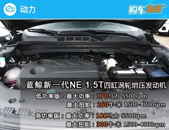 1.5T涡轮增压发动机,并且分为高低功率两个版本,其最大输出功率分别为188马力和170马力,峰值扭矩分别为300牛· 米和260牛·