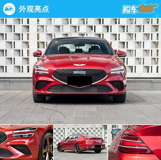 外观设计方面,捷尼赛思G70采用了家族式设计风格,紧凑、干练的车身线条搭配标志性的“钻石”造型前格栅以及分体式前灯组,有着非常高的辨识度。尾部造型圆润饱满,尾灯并没有采用贯穿式造型,内部的示宽灯同样为上下两条平行的LED灯带,与车头元素相呼应,大幅提升了整车设计元素一体性。此外,后包围底部配备了双边共两出的椭圆形外露式排气,与中间黑色的底部扩散器相搭,很有性能感。