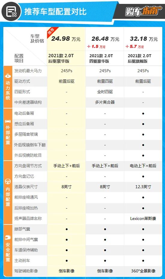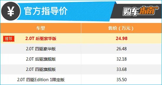 2.0T后驱豪华版性价比较高,购车时可优先考虑。