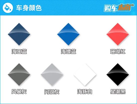 车身颜色方面,此次推出的车型共有7种配色,分别为海王蓝、珊瑚红、闪银灰、星潮黑、海豚白、风暴灰以及海螺蓝,可以看出车身颜色有很大的选择余地,大家可以根据自己的喜好来选择。