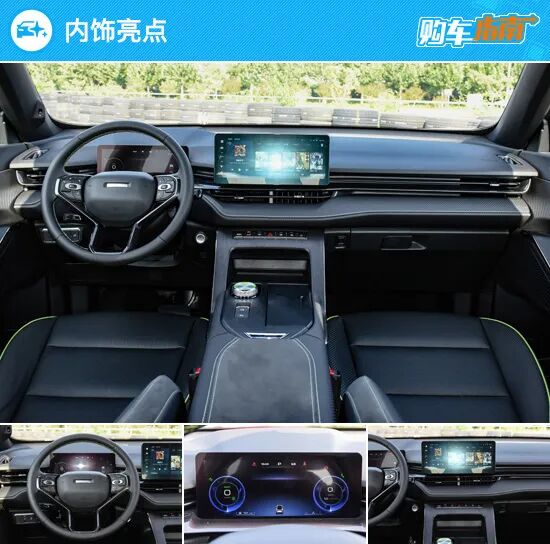 哈弗H6S在内饰设计方面不会带给我们太强的新鲜感,整个车内的布局与第3代哈弗H6基本一致。新车的内饰部分同样使用运动化设计,黑色为主的风格配合上碳纤维风格饰板,再辅以亮黄色缝线装饰,整体看上去足够简约大气同时又不会显得凌乱。车内还配备了10.25寸全彩虚拟仪表、12.3寸超智联触控屏、10寸HUD智能全彩抬头显示,均可实现三屏语音控制。另外,在操作流畅度方面,由于其采用的是高通8155芯片,操作起来不担心会有卡顿。除此之外,哈弗H6S搭载科大讯飞定制真人语音识别率高达97%,并拥有深度思考能力。在智能配置方面哈弗H6S相比同级别车型优势还是非常明显的。