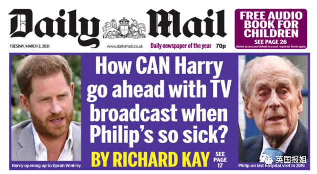 王室作家Robert认为:“菲利普亲王显然身体欠佳,这对夫妇如果继续计划播出他们自我放纵,毫无保留的采访内容,那会使他们显得无情无义,极其自私。”