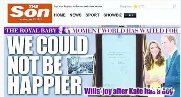 在他出生那天,《太阳报》甚至把自己的头版从The SUN 改成了The Son。