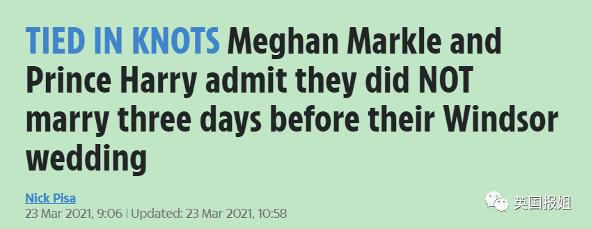 几天后,哈里和梅根也意识到事情闹大了,他们的发言人对英国媒体坦白,在奥普拉秀中关于私人婚礼的描述存在误导,他们“只私下交换了誓言”。结婚证肯定没有拿到,合法性肯定没有,是否有大主教出席存疑。