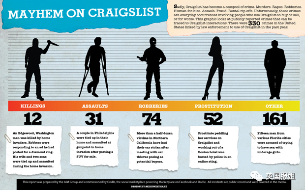仅英国就有3万余女性被骗,而Craigslist对这样的广告视而不见。甚至有文章认为,Craigslist上的很多广告因为缺乏审查,导致了更严重的刑事犯罪。2010年只要有300起恶性犯罪在Craigslist促成。