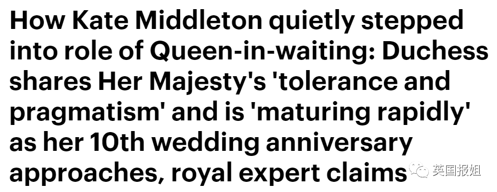 皇家专家的原话是:菲利普亲王去世后,凯特将“加紧”步伐,担当未来女王的角色。因为她给人的感觉大气优雅,能撑起场面。并且被评论为“像女王一样不小心眼,也没有报复心。”