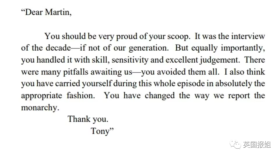 至于巴希尔,BBC表示虽然他出示了虚假的银行账单,但他是个诚实又光荣的人,而且戴安娜接受采访,也不是因为这个伪造的流水单啊!