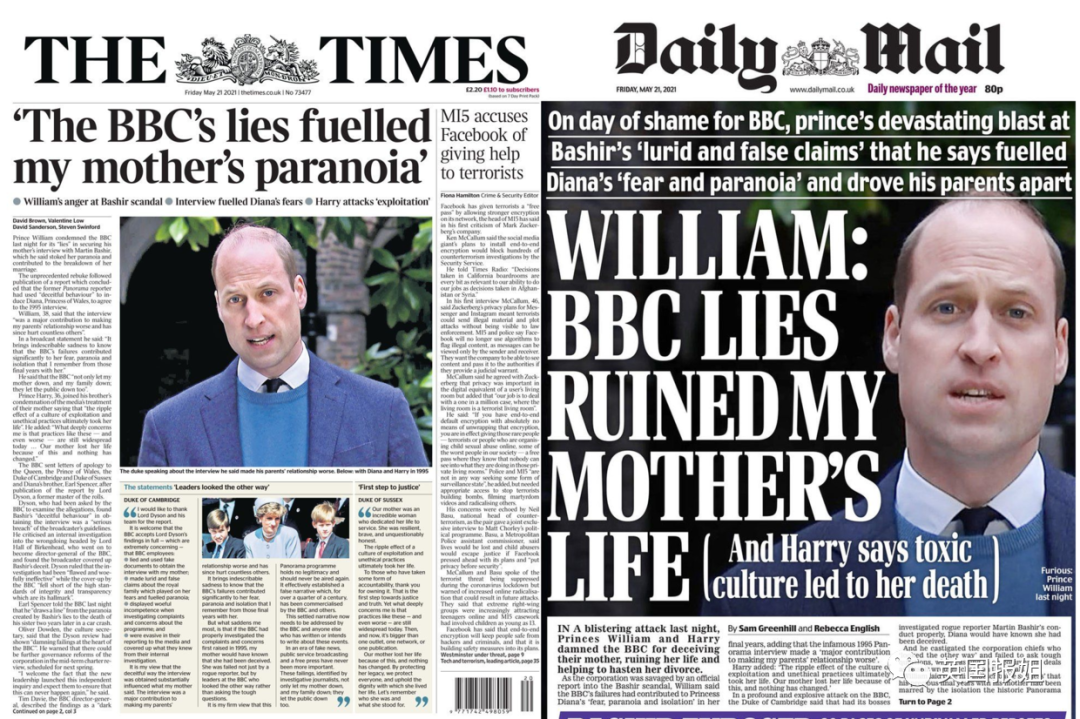 《每日邮报》:“威廉王子:BBC说谎,毁了我妈妈的一生。”
