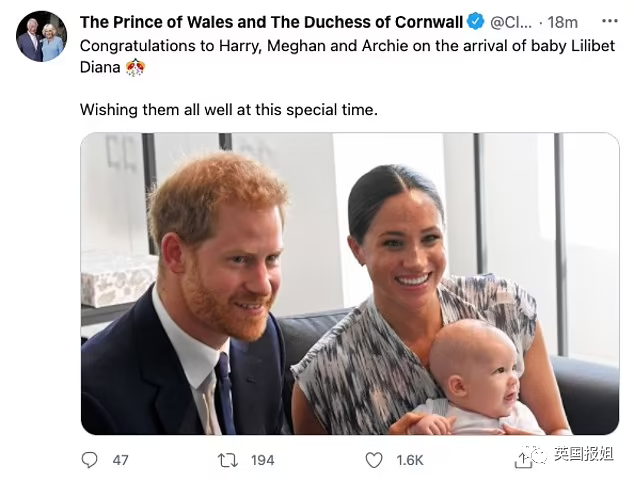 这之后,查尔斯夫妇,威廉夫妇,王室官方账号都很快跟上,化解了一点尴尬。
