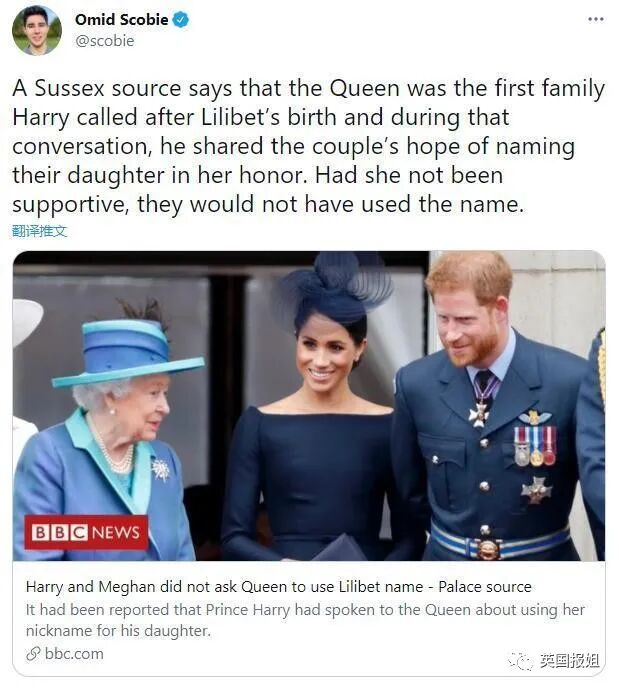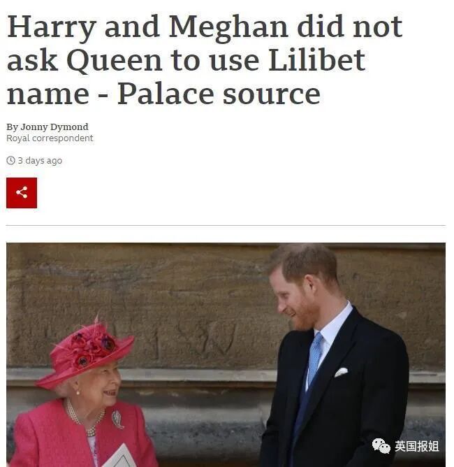 但说“女王同意以自己的小名给孩子命名”,就比较含糊了。因为如果真的获得了女王的同意,哈里梅根一方不会只说“如果女王不支持,他们不会用这个名字。”