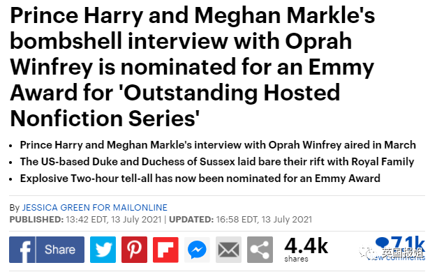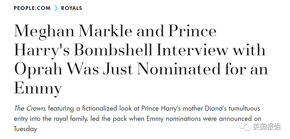 “放个屁都能获奖”,大概就是英国人对于梅根哈里获得艾美奖提名的看法。