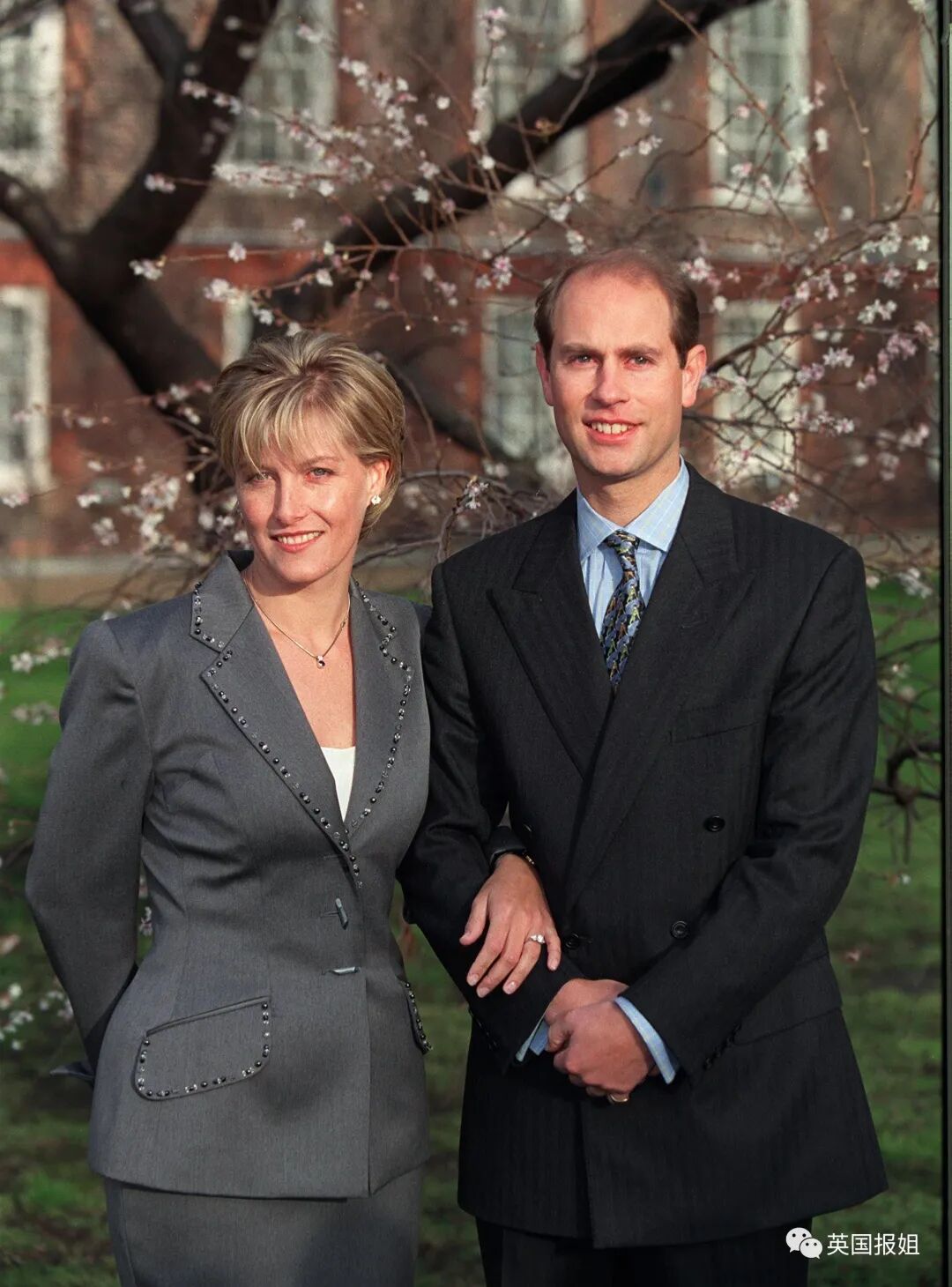 两人1994年交往,1999年1月订婚,一直比较低调。《名利场》曾报道,本来爱德华想1995年求婚,但因为戴安娜被BBC记者马丁·巴希尔欺骗接受采访造成王室大动荡,于是“很懂事地”忍到1999年求的婚。