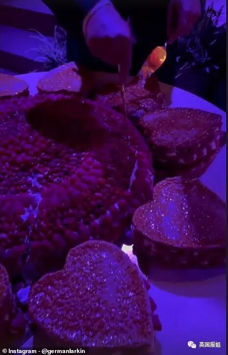 桃心蛋糕+定制餐具什么的,顶奢婚礼的日常操作了。