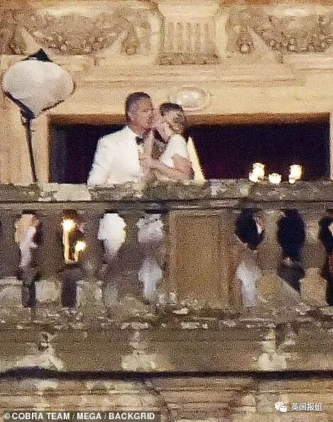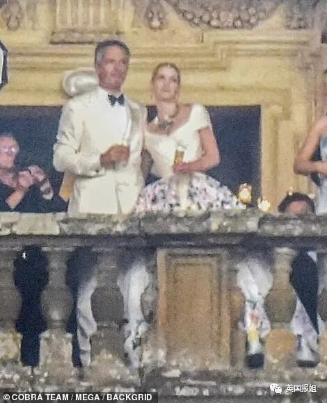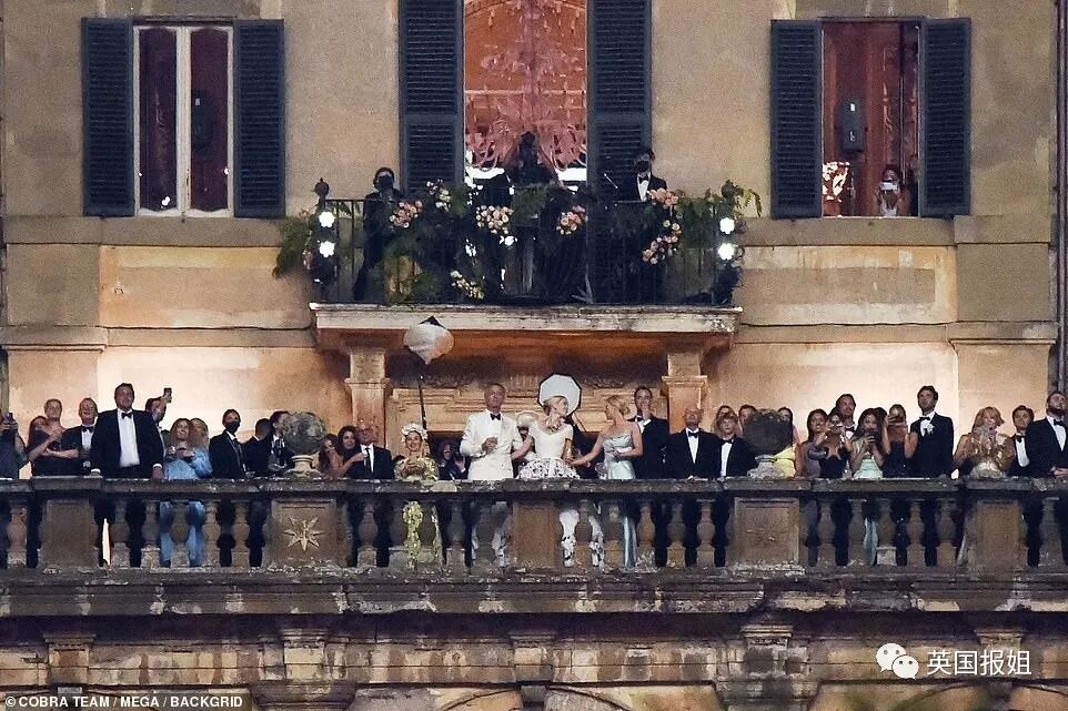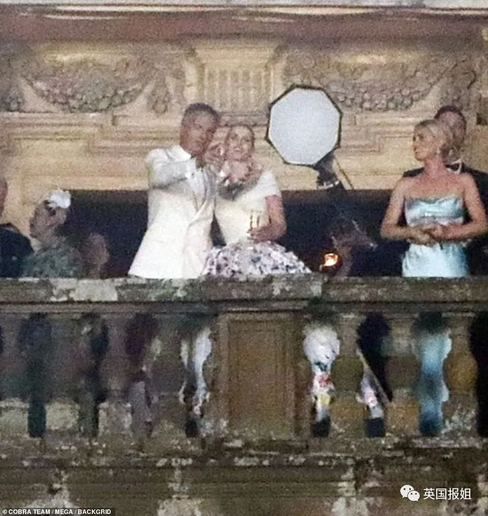 绝美婚纱之后,凯蒂又穿上印花派对礼服,和众多宾客一起观看烟火。