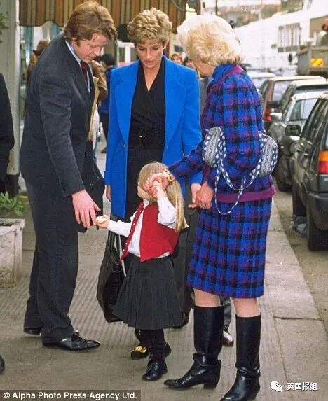 (凯蒂小时候被拍到姑姑戴安娜和爸爸奶奶一起送她上幼儿园)
