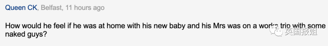 “如果是他在家里带孩子,他老婆在外面和几个裸男一起出差,他会怎么想?”