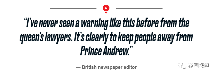有英国媒体编辑说,“我以前从来没见过女王律师发出的这种警告,很明显就是让人们别去招惹安德鲁王子。”