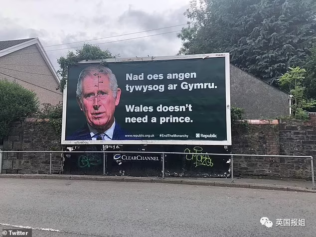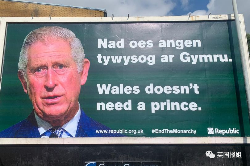 于是,抗议和抵制查尔斯王子的广告牌出现在了各地,尤其是威尔士。(他的头衔是‘威尔士亲王’)