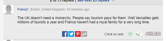 “说得好,英国不需要君主制。人们说旅游业因为王室的存在而受益,放屁啦!凡尔赛宫每年接待数百万游客,法国有王室吗?”