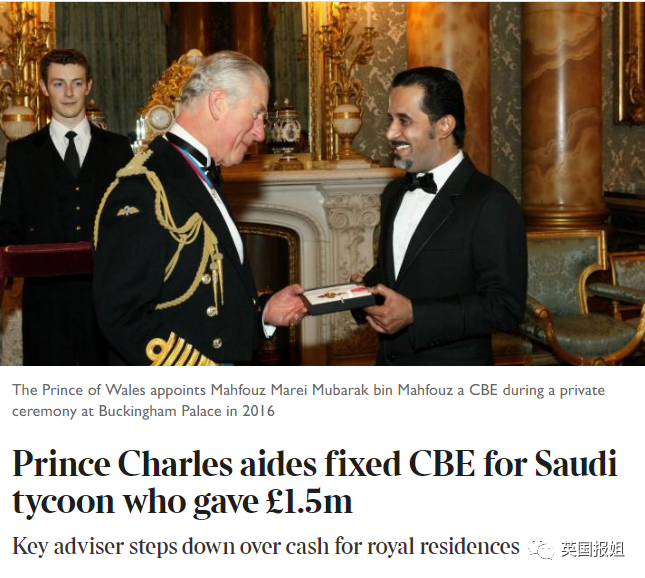 翻译成人话:查尔斯王子疑似通过自己的亲信,明码标价地卖王室授予的最高荣誉。
