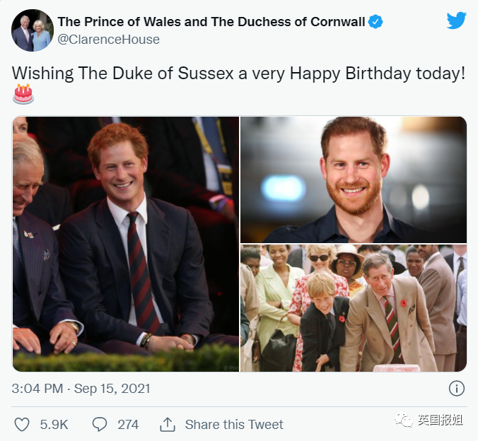 毕竟是哈里王子的生日,即使人家已经公开和王室断绝关系,该祝福的还是要祝福。