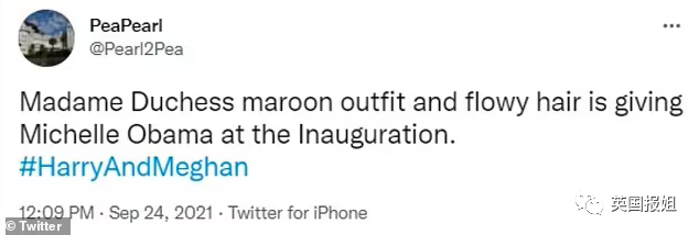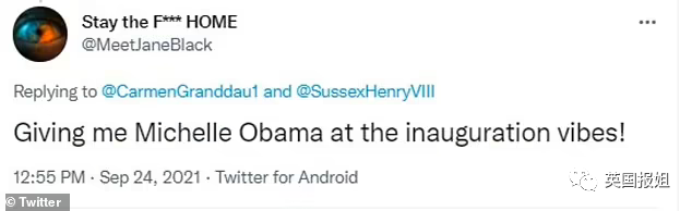 于是推特上的米歇尔粉丝纷纷指责梅根抄袭:“抄袭完戴妃,抄袭凯特,这会抄到我们前总统夫人头上了。”