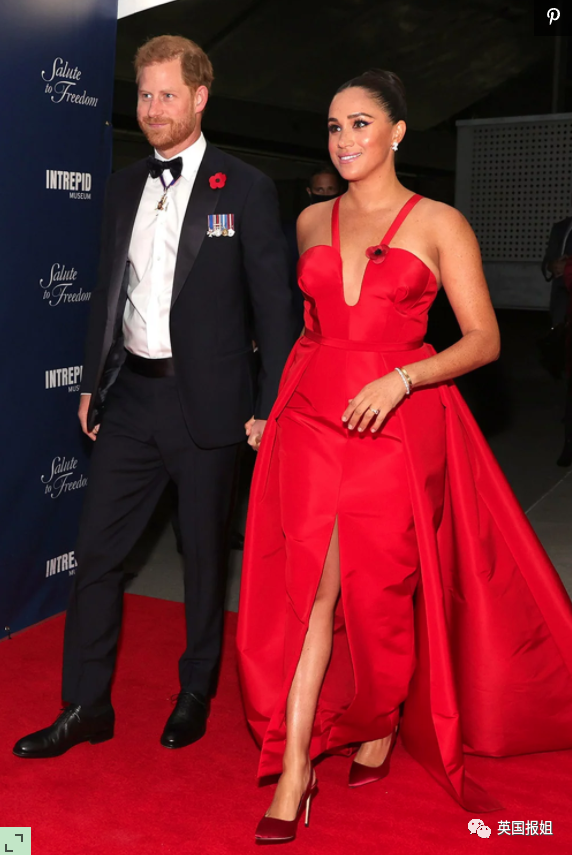 今天哈里和梅根许久不见地盛装走上红毯,为美国的退伍军人节助兴。梅根一身华丽的深V红裙让人一瞬间感觉回到了两人还没“脱英”的时代。