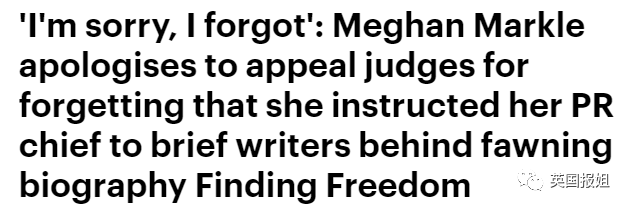 昨天,梅根也对这些新证据做出了回应。她首先承认自己的确误导了法庭,承认两名作者写书这件事经过了她的授权,且为书提供了部分内容,并因此向法庭道歉。