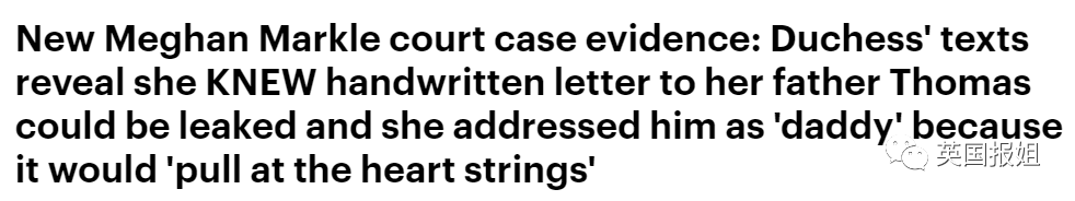 更离谱的“反转”其实是那封梅根写给父亲的信。梅根在法庭上强调,这封信是绝对私密的,以现在的证据看来,它却很可能是梅根故意泄露给媒体的...