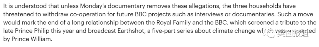 王室催这件事催到开播前一秒,电视台仍然拒绝给他们看成片。所以威廉和查尔斯就很气啊,王室和BBC合作这么久,在播出前让成员审核内容是约定俗成了,这回面子都不给一下的吗?
