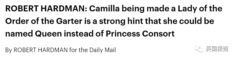 《罗伯特·哈德曼:卡米拉被授予嘉德勋章,意味着她将被称为Queen,而不是伴妃》