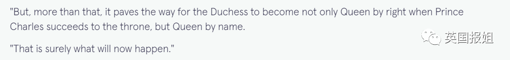 她不会成为王后Queen,只会成为伴妃princess consort。