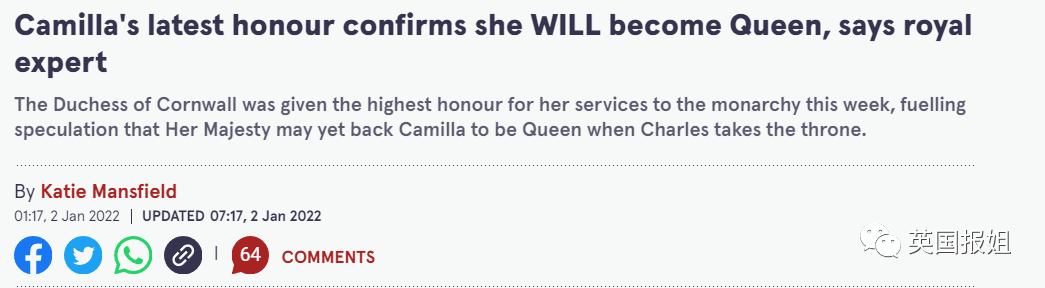 最让人惊讶的是,“卡米拉被授予嘉德勋章”的报道下,竟然也不是一边倒的骂声。
