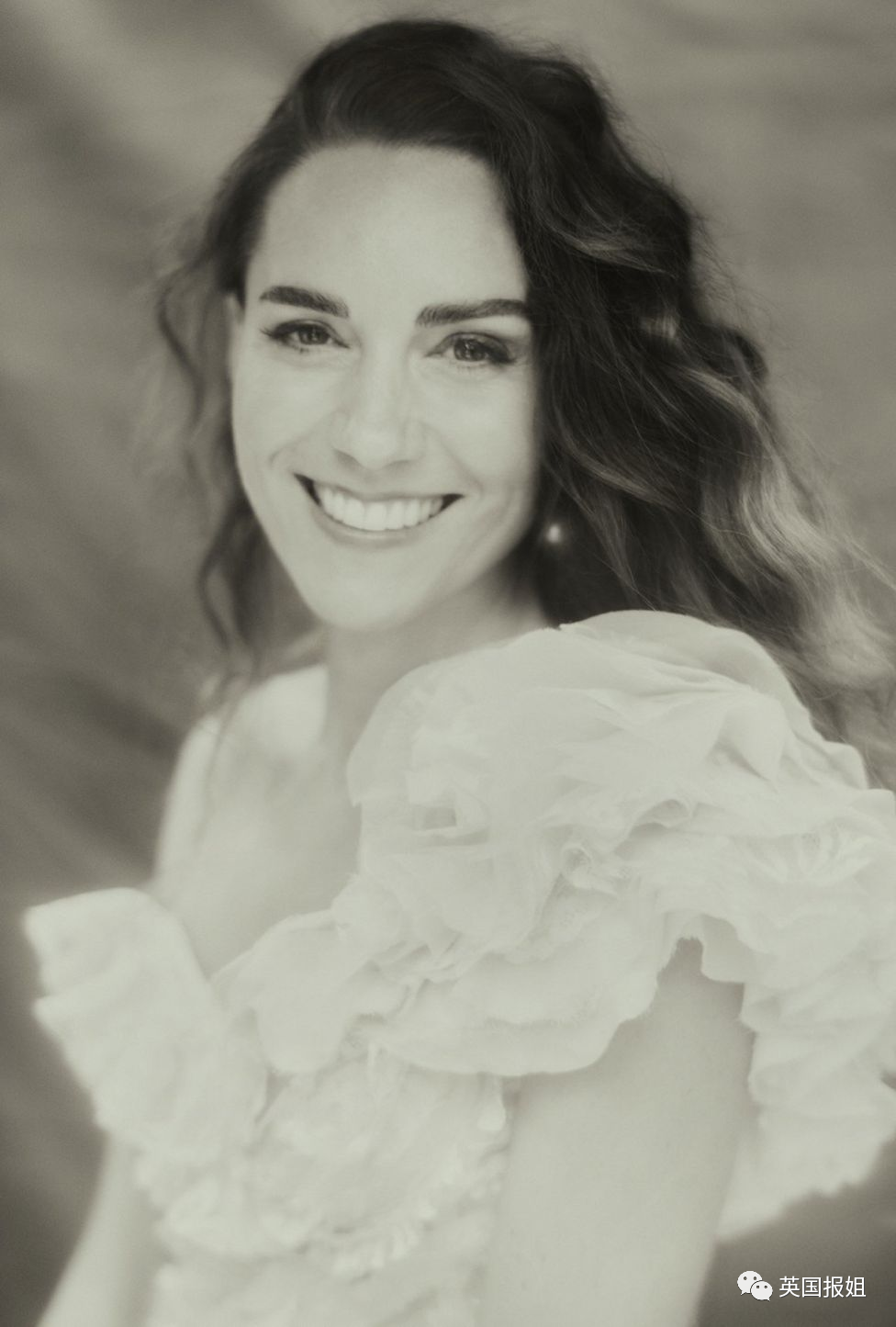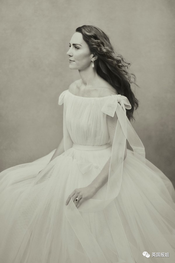 第一张黑白侧面照片,是最传统的“王室照”,凯特望向远方,展现庄严古典的王室气质。