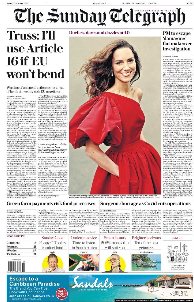 今天,一张凯特王妃的红裙肖像,登上了英国各大报纸的头版头条。