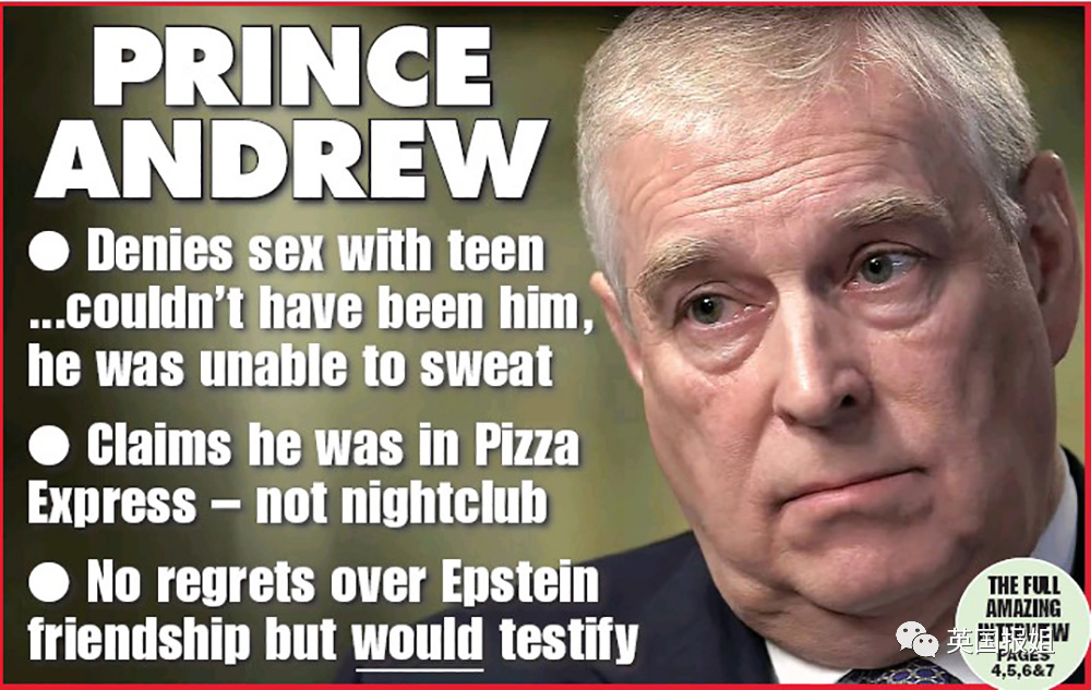 安德鲁王子多半免不了要在法庭摄像机前被盘问7小时,恶臭的私生活,详细的私密信息等尴尬问题,也会随着庭审被公之于众。