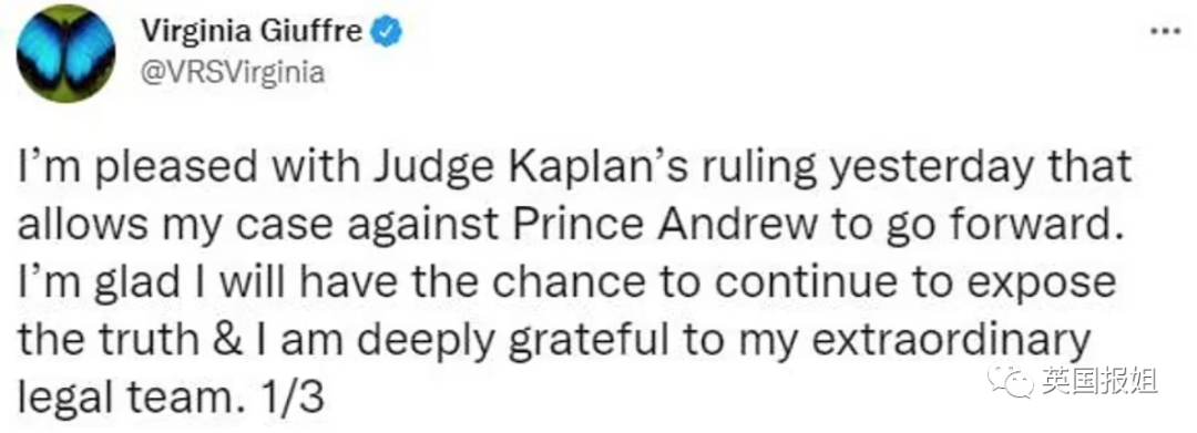 这代表安德鲁垂死的挣扎没有起效,Giuffre的民事诉讼会继续推进。