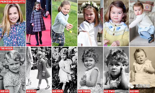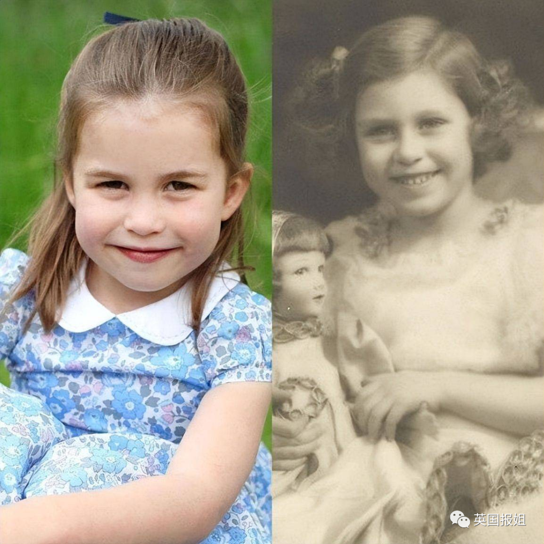 所以从夏洛特出生开始,就有很多人会把她的照片和女王同期的照片放在一起对比。