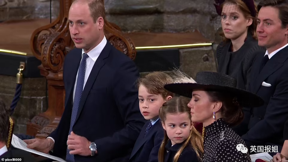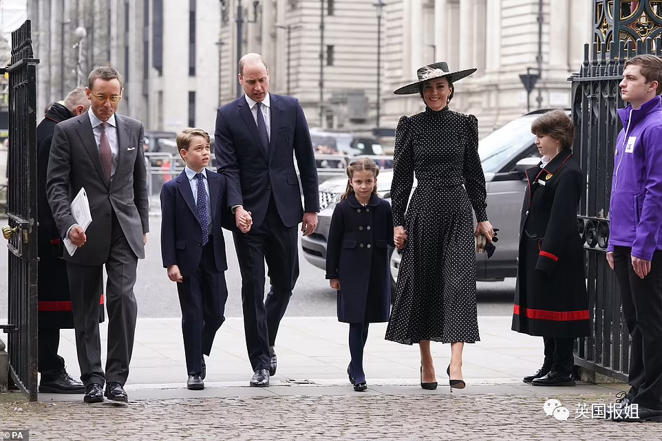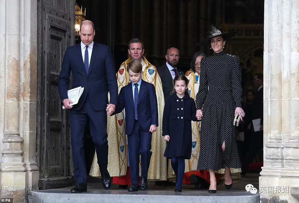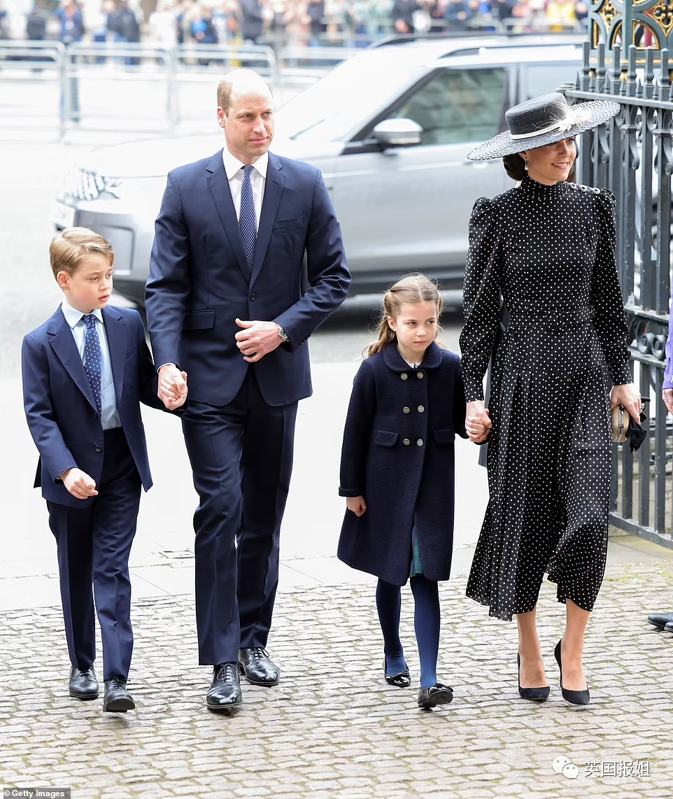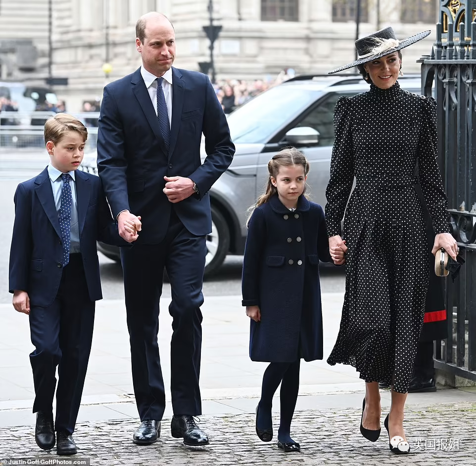 前段时间女王为逝世一年的菲利普亲王举办的纪念活动上,威廉凯特带着8岁的乔治小王子和6岁的夏洛特公主一起出席。